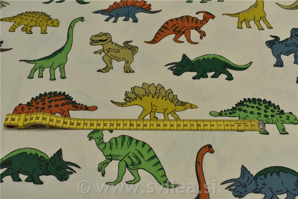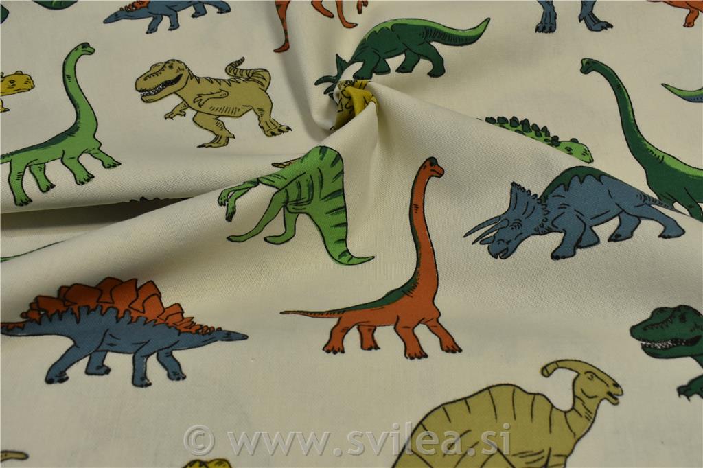 Dekorativno blago - različni barvni dinozavri na smetana osnovi