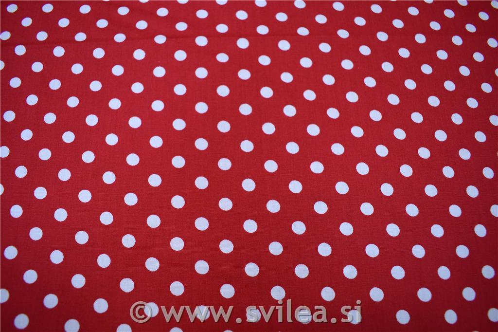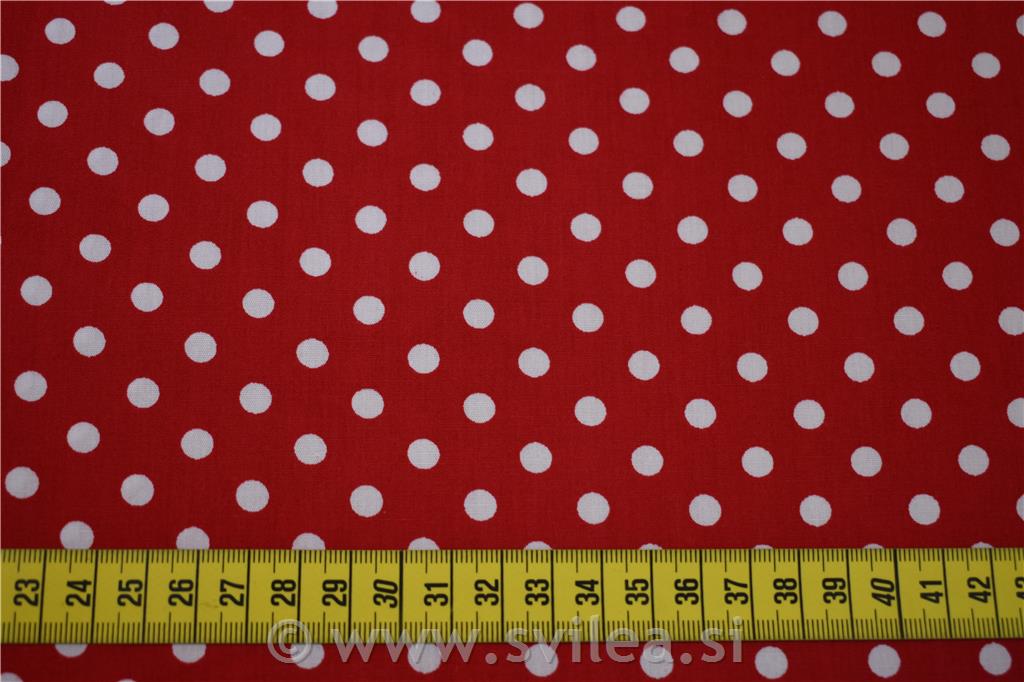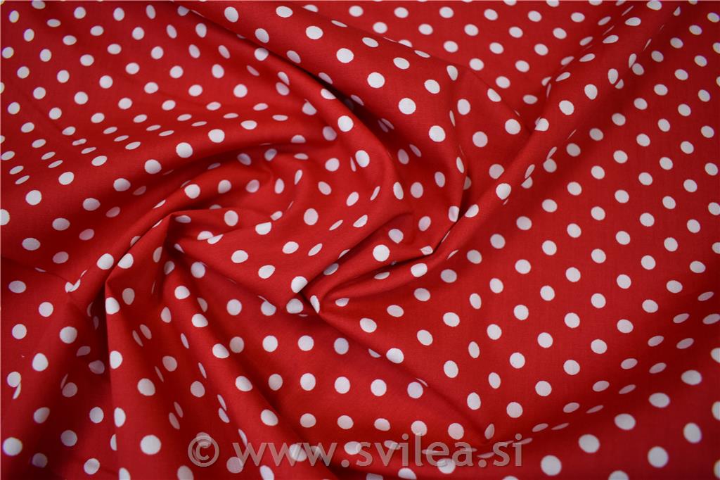 Metrsko blago bombažno platno bele 6 mm velike pike na rdeči podlagi. Sestav: 100% bombaž širina: 145 cm, teža: 110g/m2