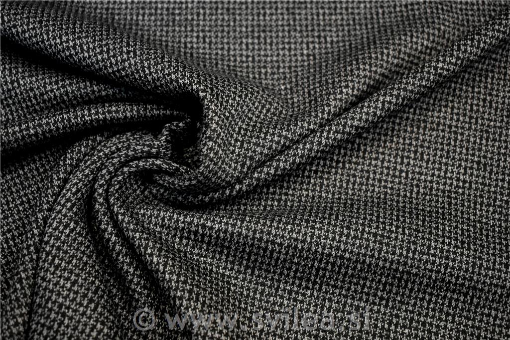 Viskozni jersey v pepita vzorcu črne in sive barve. Sestava blaga: 50 % viskoza 48 % poliester 2 % elastan širina 145 cm teža 290 g/m2. Blago je primerno za izdelavo tunik, kril, hlač, majic, jaknic...