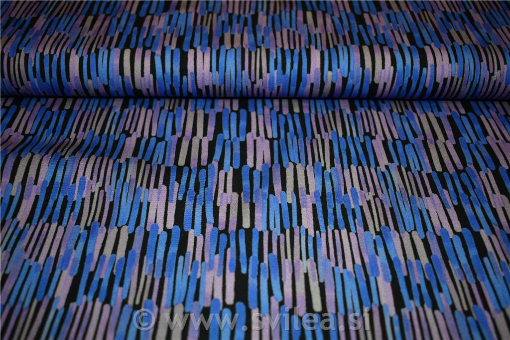 Viskoza z elastanom digital - kratke lila in pariške črtice na črni