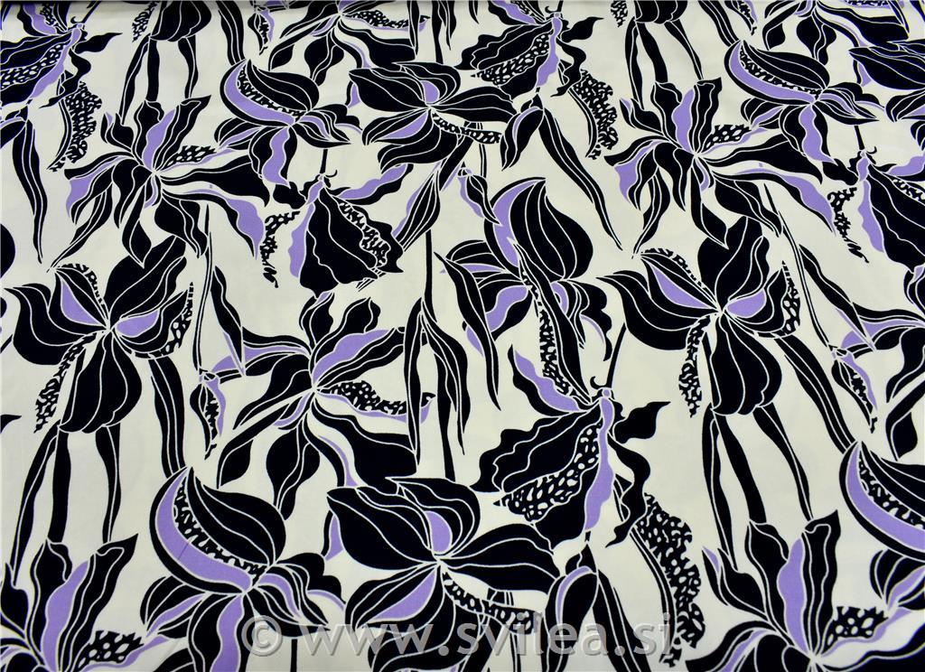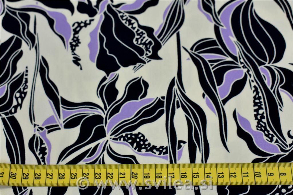 Viskozni jersey - večje rože v temno modri in lila na smetana osnovi