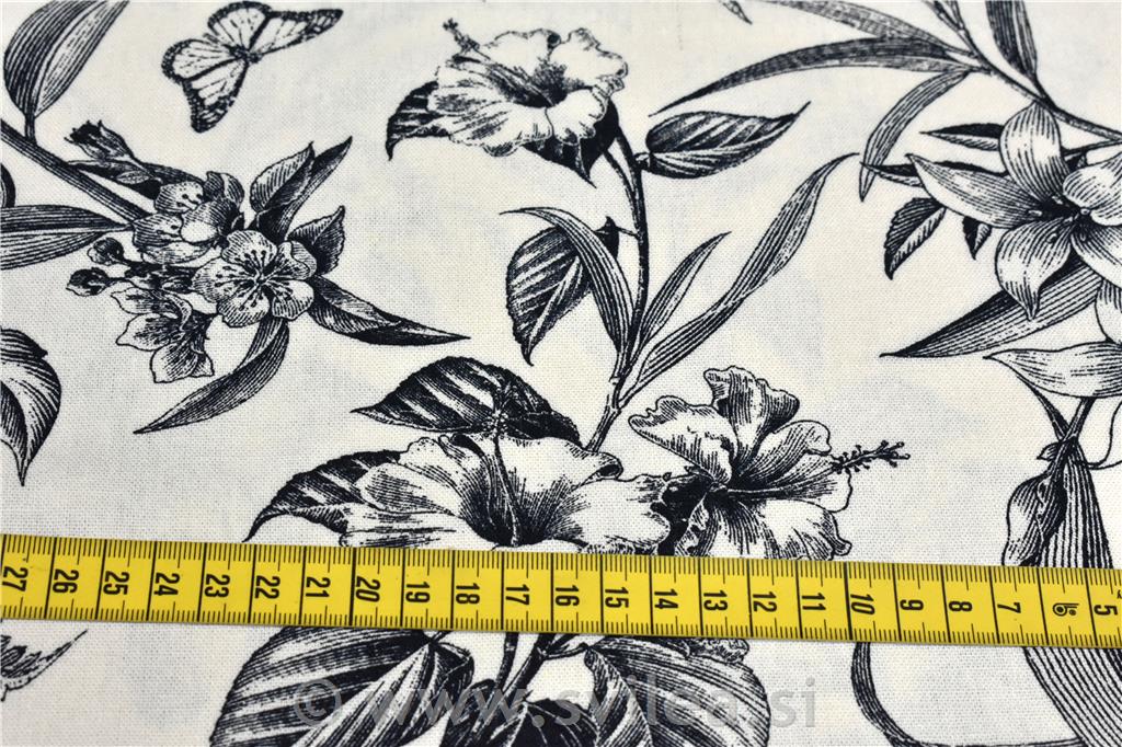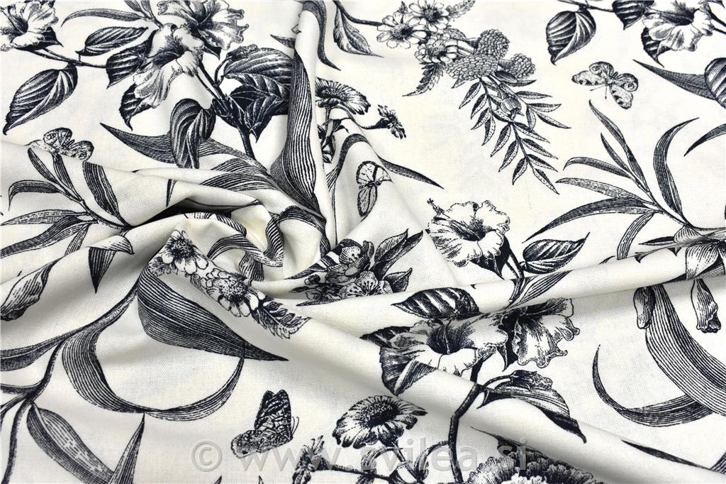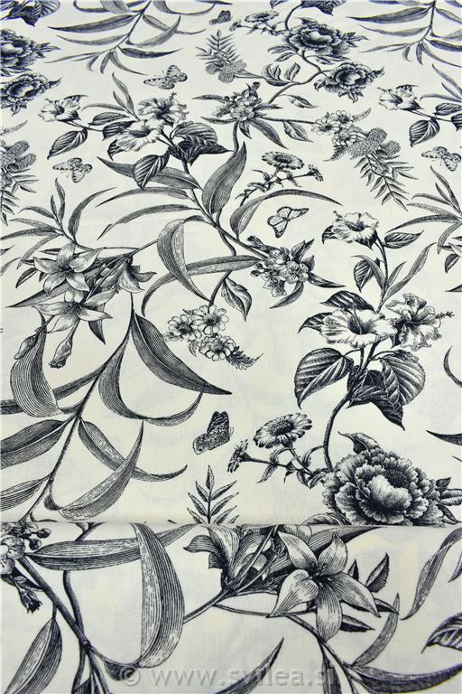 Lan z viskozo - temno modre rože in metulji na smetana osnovi