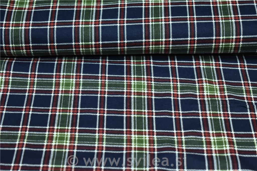 Flanela - mornarsko moder karo z zeleno in bordo črto