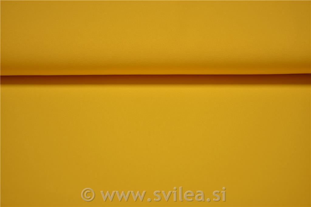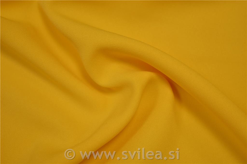Metrsko blago poliestrsko v sončno rumeni barvi. Sestav 100 % poliester širina 145 cm teža 165 g/m2. Nekatere naše stranke ga poznajo pod imenom Rebeka. Blago se hitro suši, se ne krči, je zelo trpežno. Namenjeno za krila, hlače, suknjiče in tudi delavska oblačila.