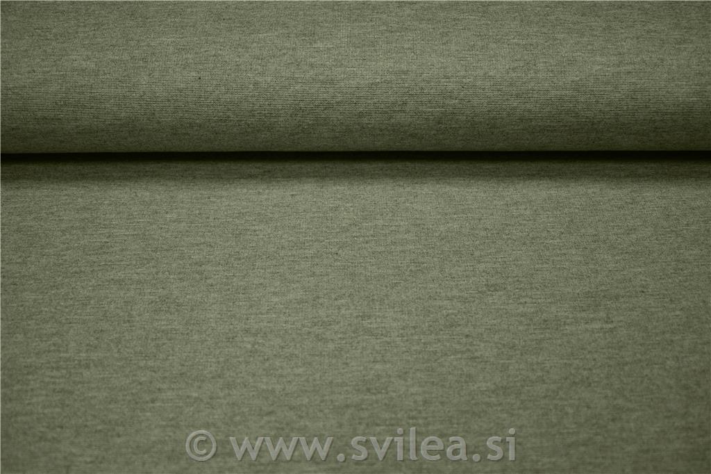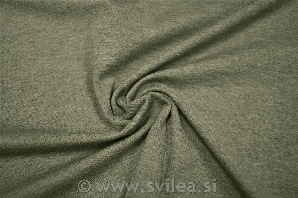 Metrsko blago jersey enobarvni debelejši srednje sive melanž barve, sestav 60% viskoza 35% poliamid 5% elastan širina 148 cm gramska teža 340 g/m2. Blago je prijetno na otip in za nošenje. Uporablja se za izdelavo enobarvnih majic, tunik, hlač, oblek...ali pa se ga kombinira z potiskanim blagom.
